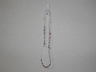 ・これは頼まれて作ったオリジナルの作品です。スワロのローズ系の色合いで3色のグラデーションを基本にしてみました。3色の繰り返しと丸小ビーズで作ってあります。使いやすさを意識してシンプルにしてみました。
