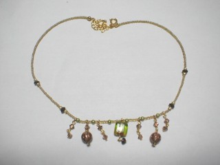 ・ベネチアンビーズの色がきれいで、適当のビーズを買ってきて、あれこれ考えて何度も試行錯誤して、この形にしました。粒が大きいものを使いこなすのは難しいなあと実感。他にもっといい使い方はいくらもありそうなんですが、勉強がたらないようです。