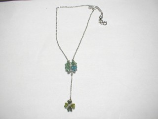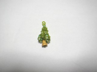 ・これも本で見かけたものをアレンジして作ってみました。本ではひとつだけでしたが、私はもうひとつぶら下げて見ました。家にあったあまりもののビーズを使ったので、色は今ひとつ決まっていないかも。四葉がいい感じに葉っぱっぽくて気に入っています。