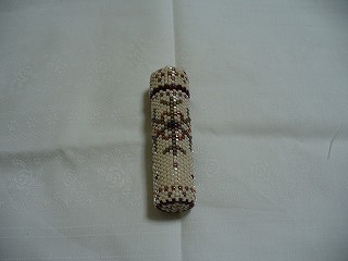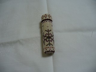 ・雪の結晶が気に入って作ってみました。ビーズを編み上げて作っています。編み物の編み図のように図を見て、その色のビーズを配色していく感じです。色を間違えないようにとても苦心しました。とてもきれいな色合いとデザインで、とても気に入っています。
