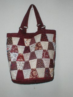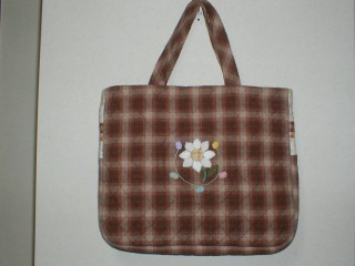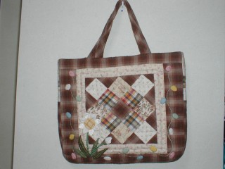 ・一応オリジナルです。すっごく迷って、花のところなんかは初めはチューリップで何度も色を変え、葉っぱの形も何度も作り直しました。白い花に変えた後も何度も直しながら今の形になりました。苦労した分お気に入りです。「歩布里」さんのところで見かけたバックが気に入ってパッチワークのところなんかはかなり真似させてもらっています。ちょこっと下荷物があるときに重宝しているバックです。本体の布がもう少し薄い色が良かったんですが中々イメージに合う布がなくてこんな感じになりました。