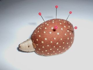 ・こちらもバザー用に2つだけ作りました。ベアーズポーさんのお手紙に載っていたのがかわいかったので作ってみました。気に入ったので自分の分も作ってしまいました。ピンを刺すと針ねずみにヘンシーン!でも、私の刺繍のせいでねずみよりも犬顔かも。底に厚紙が入っているので針が抜け落ちなくていいかも。 ・レシピ ベアーズ・ポー