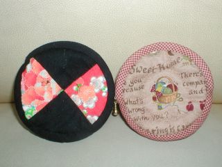 ・素材 木綿、キルト芯、ファスナー他 これもオリジナル。和風の方はバザーで売れ残った七五三用の着物の生地を活かして作りました。カントリー風のものと2種類、講習会で作りました。