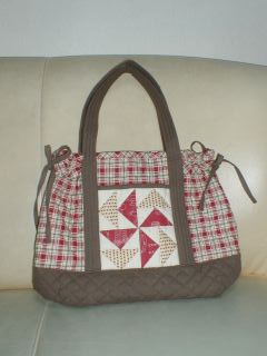 ・素材 木綿、キルト芯、他 これは娘のために作ったバックです。色の感じが気に入っています。パッチワークのところがあんまりなくってキルティングがメイン。サイドのギャザーはちょっと珍しいかな。仕立てはミシンを活用しました。