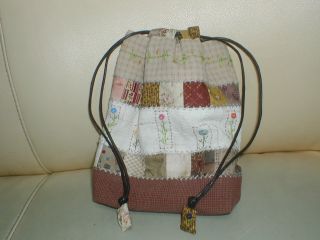 ・素材 木綿、キルト芯、刺繍糸、他 これ生協で購入したキットです。頒布はもう終わっているのに、完成したのはやっと一つ目。底の仕立てが変わっています。パッチは結構細かいですね。本当は花の刺繍とビーズの花の刺繍があるんですが、カントリー風の刺繍の方が好きだったので勝手に変えちゃいました。なので本当の姿からしたらちょっと落ち着いた感じになったんじゃないかな。