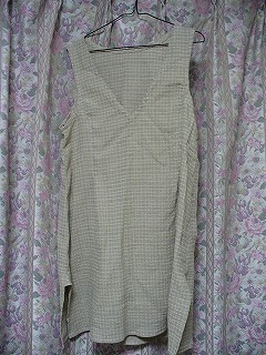 ・これも上と同じ布で作りました。すそのスリットが面白い感じです。ジーパンの上に着るのによさそう。前のVネックのところがきれいに出なくって苦労しました。