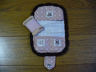 ・刺しゅうがいっぱいです。下手なのできれいに出来なくってちょっと悲しい。見た人に「魚の刺しゅうね」といわれましたが、私のは魚かもしれませんがo(TヘTo) 、見本は鳥さんです。糸巻き型の針山がかわいいので気に入っています。