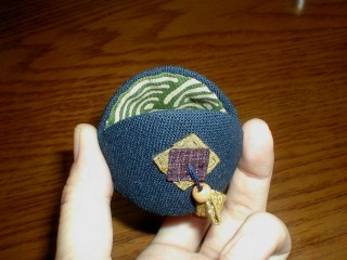 ・和風の何かが作りたくて買ってあった布を使ってみました。飾りは、なんか行き当たりばったりに作ったらこんな風になっちゃいました。でも、なんかあっているようなので気に入っています。