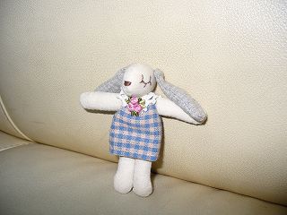 ・素材 木綿、化繊綿、他 ・なんかふっと思い立って作りました。イメージの基は娘の書いたイラストです。なんかかわいかったので。適当に型紙を作ってざくざく縫って完成♪手足が最初ちょっと太かったので細く直しています。身長は7、8cmくらいの小さい子です。 ・作成日 2006年1月18日