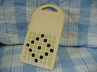・素材 タイル、木材、他 ・初めてタイルを扱ってみました。面白かったー♪これは「はんど&はあと」の6月号のキットです。20×10.5センチと小さめなので、コースターと、ちょこっとおやつを送って感じかな。重さがネックで今まできれいだなーと思っても挑戦してこなかったんですけどね。これは手ごろなサイズと重さでした。 キット 「はんど&はあと」の6月号のキット ・作成日 2006年5月