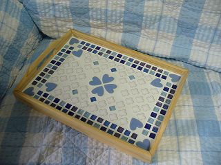 ・素材 タイル、木材、他 ・こちらはもともと100円均一で購入したコルクトレーに、ガラスや、ハート型の使ってみたかったタイルを使って作ってみました。26×19センチとこれもあまり大きくはないですが、こちらの方はずっと重いですね。夏にランチタイムにランチョンマットみたいに使ったりするのにいい感じ。目地剤を適当に買ってきたので作っている途中に足りなくなって、慌てて買いに走るという、失敗をしてしまいました。固まってしまったらやり直せないので。でも何とかやりたいよういにできました。よかった。 ・作成日 2006年5月21日