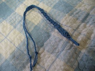 ・素材 ヘンプ、ターコイズ ・ターコイズを使うところと、石包みが気に入って作ってみました。実際はとでもごつかったので編みなおして1本少なくして編んでみました。それでもごついかも。夏にはこんなのもいいかな・・・?ターコイズは好きな石です♪ヘンプとターコイズって合う気がします。編み方は本とは変えちゃっているところもあります。とっても難しい玉結び、平結び、石包みです。 ・参考図書 「麻で結ぶヘンプアクセサリー」 ・作成日 2006年5月25日