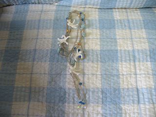 ・素材 ヘンプ、レース糸、ビーズ、他 ・コットンタイムの7月号を見て作りました。ビーズは同じものが手に入らなかったので家にあるもので適当に作りました。白いレースで編んだものがヒトデ、青いのが貝のイメージ。違う素材を使ったせいで、なんだか違うイメージ・・・。夏にはいいのではないでしょうか?着けてみると、パールビーズが前からは見えない位置になっちゃうのが悲しい。 ・参考図書 コットンタイム ・作成日 2006年6月12日