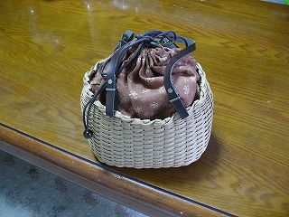 ・素材 クラフトテープ、他 ・本で見てとてもかわいかったので作ってみました。でも私が作ったのは、なんか釣りに使う魚籠みたいで・・・。内布がないとへんかも。 ・参考図書 エコクラフトで編むバック・かご・小もの ・作成日 2006年7月18日