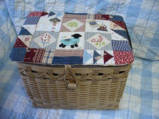 ・素材 クラフトテープ、布、刺繍糸、他 ・本でみたラックの編み方を変えて作りました。蓋の部分はオリジナル。ううーん、蓋のパッチワークはごちゃごちゃしてしちゃって失敗だったかも。他のソーイングのセットとイメージが合うようにして、やってみたいモチーフを詰め込んだらこうなりました。欲張り過ぎなのかなあ。サイズも大きすぎちゃって。でも何でも入るようになりました。 ・参考図書 エコクラフトで編むバック・かご・小もの ・作成日 2006年7月23日