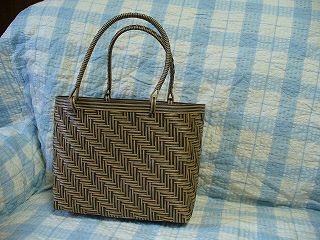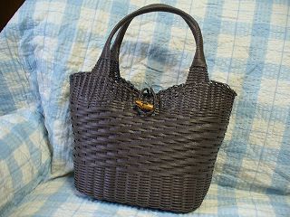・素材 クラフトテープ ・あじろ編みってなんかかごとの格闘みたいな気分で編みました。網目をそろえるために四苦八苦。キットだったので編むコツが記載されていて、ラッキー。1段ごときっちりサイズを測るという丁寧さで編んで何とかいい感じ?本当はチョコレート色一色で編みたかったんですが、ツートン。目に痛い?あじろ編みはテープが2重になっている感じなのでしっかりしていていい感じです。内袋を作るつもりだったんだけど、まだできていません。 ・キット エコクラフトアイ ・作成日 2006年7月26日